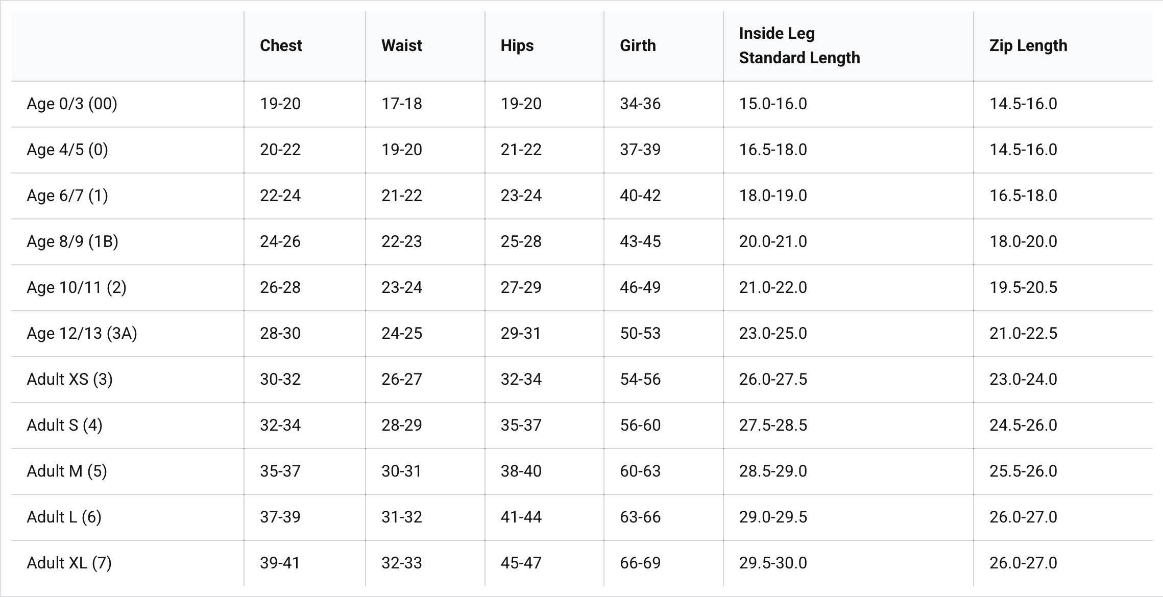 Customer Feedback: Age 0/3 up to Age 8/9 tend to come up small for lycra items.